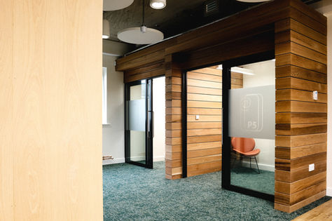 The interior design elements were inspired by mid-century modern, soft industrial and biophilic design code. We selected materials that reflected nature including colour schemes of calming greens and neutrals. Environmentally conscious choices were made when specifying the building fabrics such as carpets made from recycled material and plastics.
